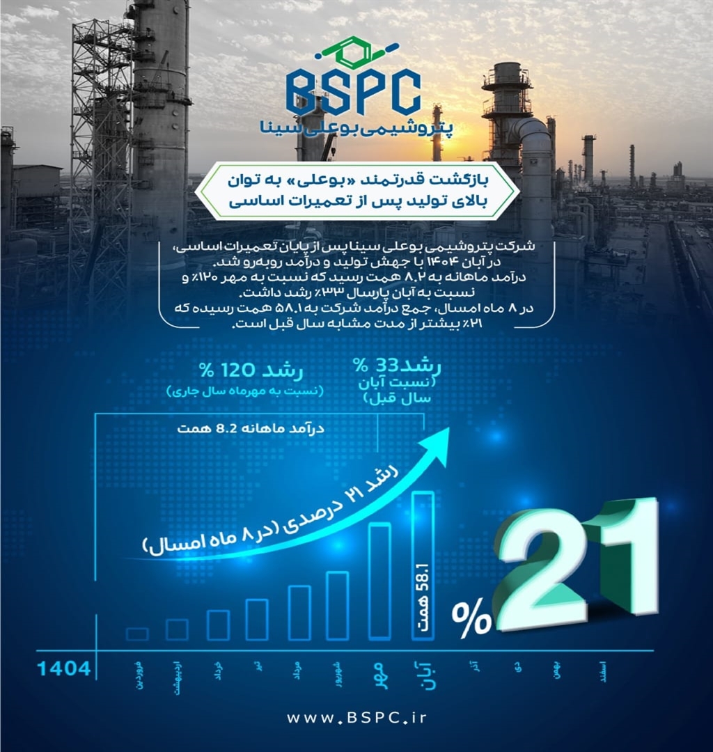 مقایسه این عملکرد با آبانماه سال گذشته نیز تصویر روشنی از روند صعودی شرکت ارائه میدهد؛ جایی که درآمد بوعلی با رشد ۳۲.۶ درصدی نسبت به رقم ۶۲,۱۴۷,۹۳۹ میلیون ریال سال قبل همراه شده است. این افزایش، بیانگر تقویت حضور شرکت در بازارهای داخلی و صادراتی و بهرهگیری مؤثر از ظرفیتهای ارتقایافته تولید است.