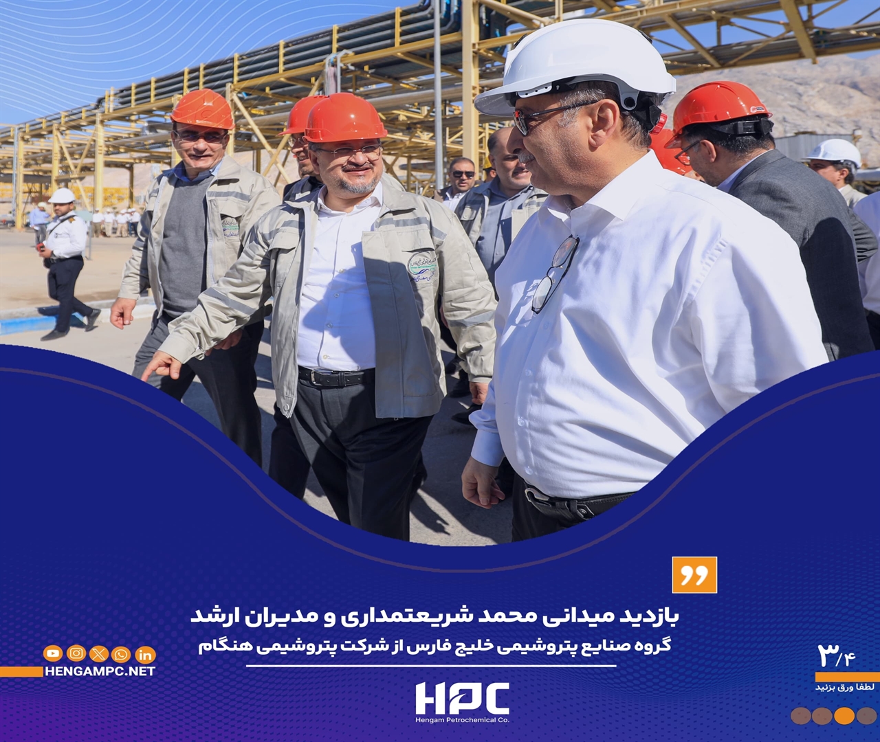 • بازدید میدانی شریعتمداری و مدیران ارشد گروه صنایع پتروشیمی خلیج‌فارس از شرکت پتروشیمی هنگام