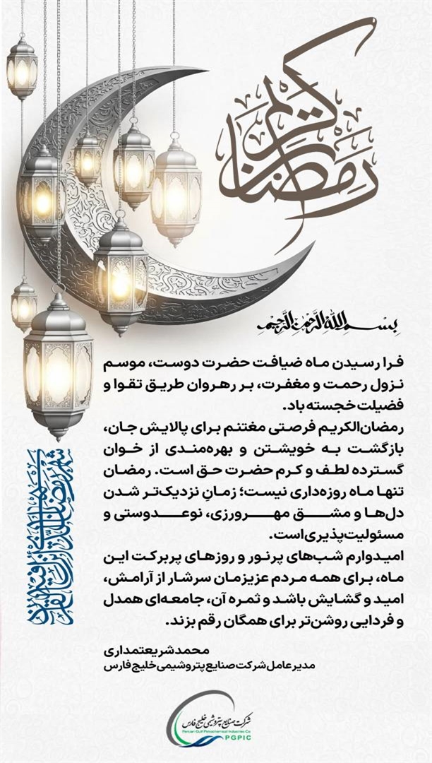 امیدوارم شب های پرنور و روزهای پربرکت این ماه برای همه مردم عزیزمان سرشار از آرامش، امید و گشایش باشد و ثمره آن، جامعهای همدل و فردایی روشنتر برای همگان رقم بزند.
