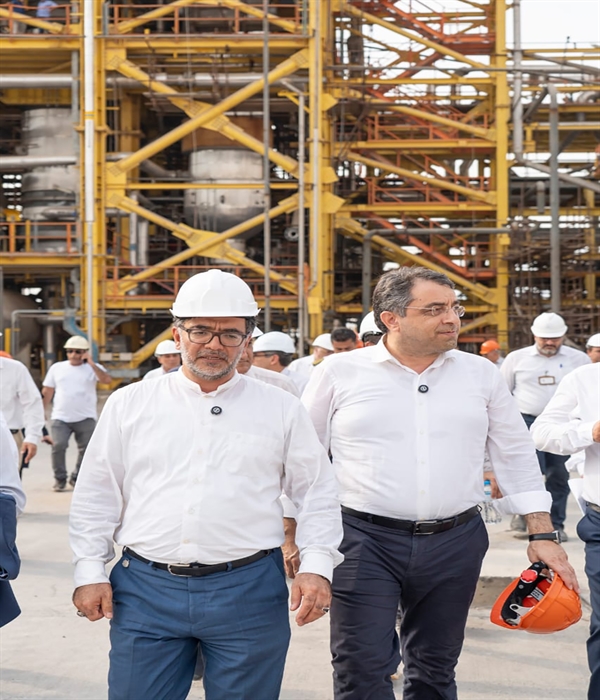 Mahmoud Aminnejad and her accompanying delegation visited Hengam Petrochemical and reviewed the latest status of the urea project